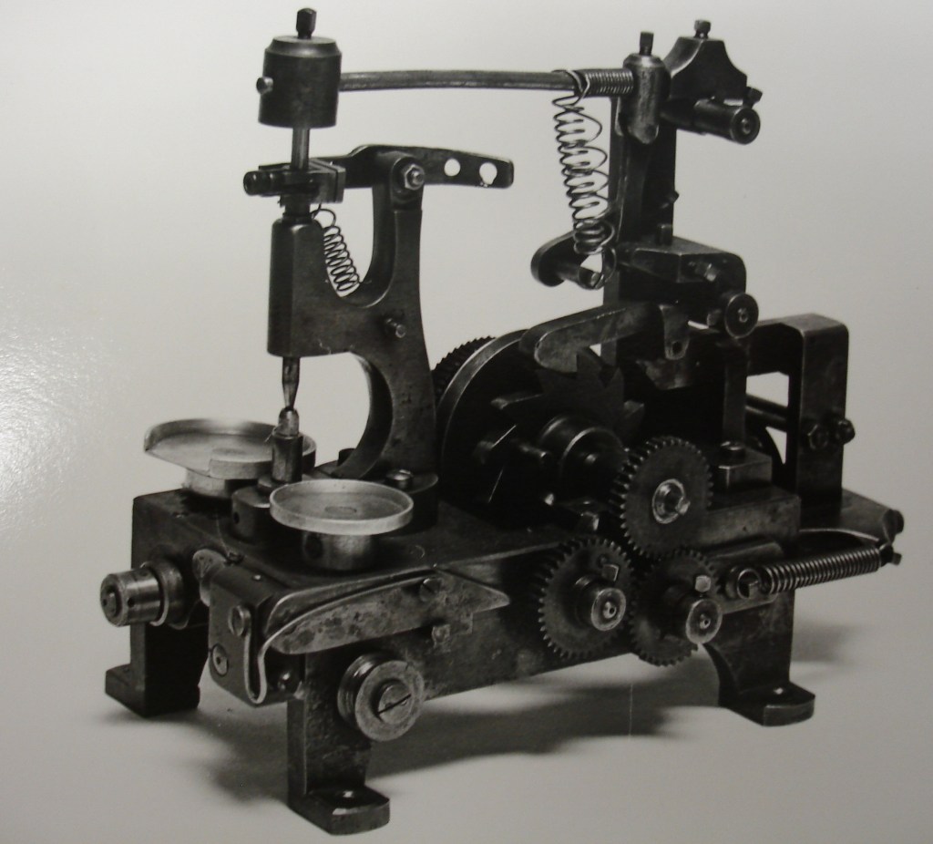 „Ein kleiner sehr nützlicher Behelfsapparat für den Uhrmacher. Wenn sich in den Platinen zerbrochene Schrauben befinden, so können solche auf schnellste Art entfernt werden. Man spannt die Platine zwischen den beiden Spitzen A und B ein, indem man die Spitzen direkt auf die zerbrochene Schraube fixiert. Die Platine wird gedreht und die Schraube löst sich sofort. Ersatzspitzen werden mit dem Apparat geliefert“