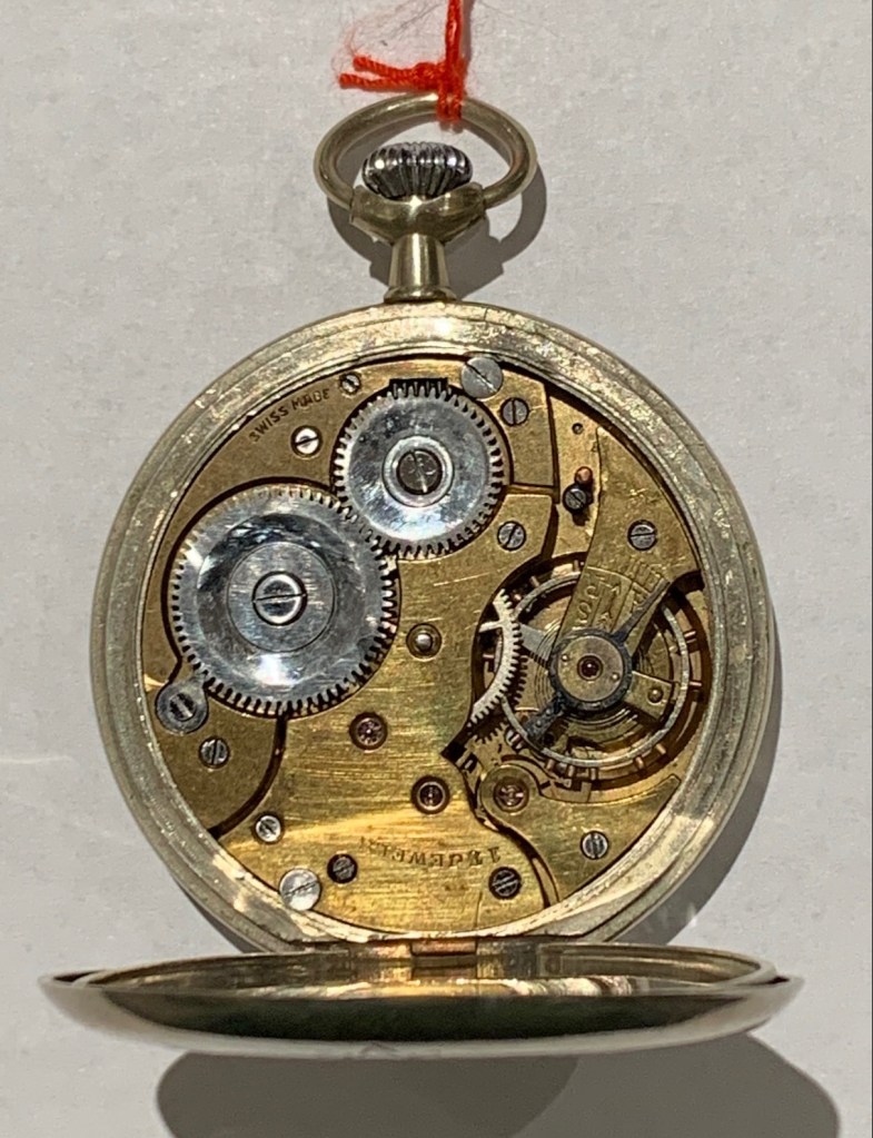 Links: AM 123, 16“‘ in einer Savonette-Version, Modell 105 aus dem Catalogue Général 19/20 der Favoris Watch Co. [Adrian Michel, Walde]. Bisher habe ich leider keine Uhr mit dieser kleineren Werkgrösse gefunden.