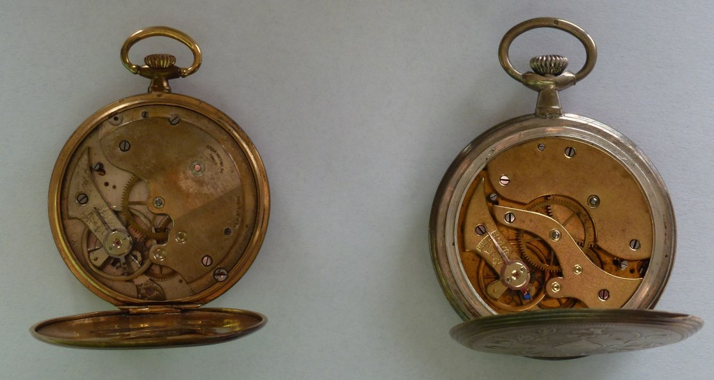 Diese drei Kaliber unterscheiden sich nur durch die Form der Brücken. Das Kaliber AM 154 war schon im „Catalogue général 19/20“ der Favoris Watch Co. unter dem Titel „Principaux calibres“ enthalten (Bild unten links). Die einfachste Ausführung wies einen Stein auf. Es gab aber auch Ausführungen mit mehr Steinen. Unter der Ebauches SA gab es vom Kaliber AM 153 auch die Grösse 18“‘, allerdings dann auf Basis einer ähnlichen Grundplatine des Kalibers AM 66.