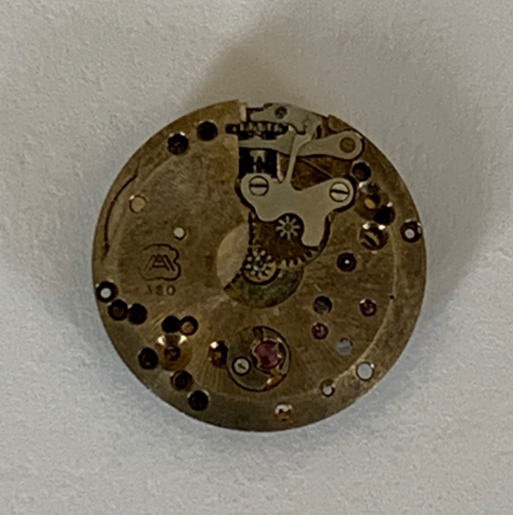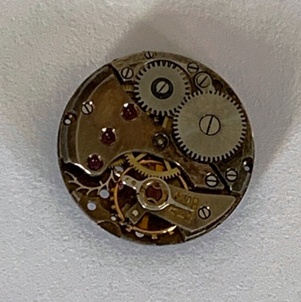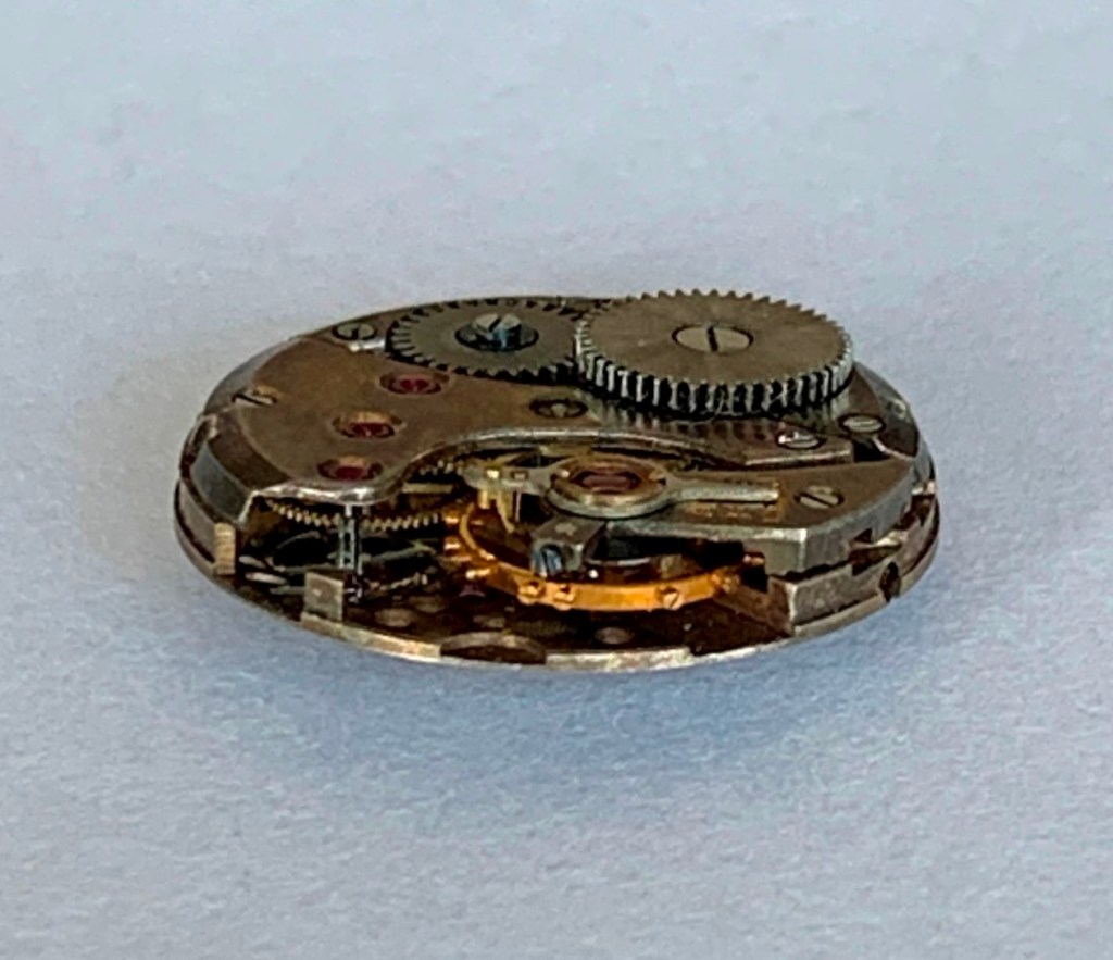 Dieses kleine Ankerwerk mit 17 Steinen wurde zu Beginn nur für Damenuhren eingesetzt. Um die Bauhöhe zu reduzieren liegt die Unruhspirale innerhalb in der mittleren Ebene der vergoldeten Unruhe.